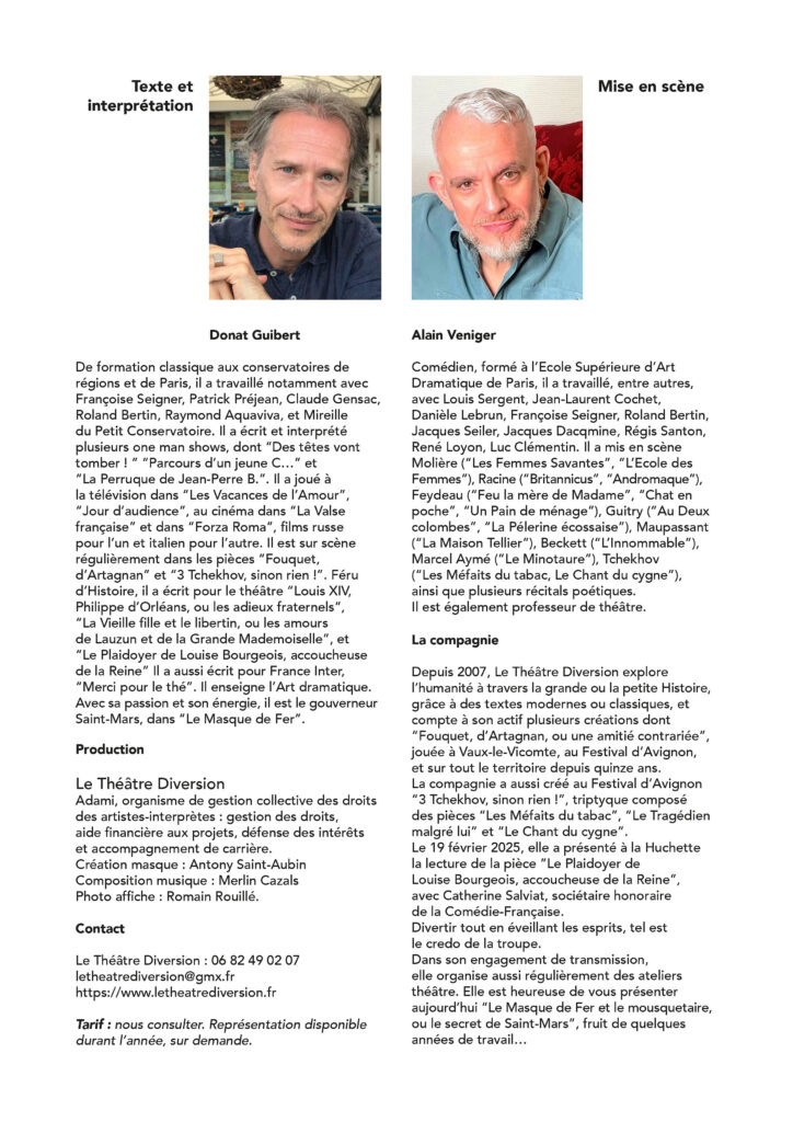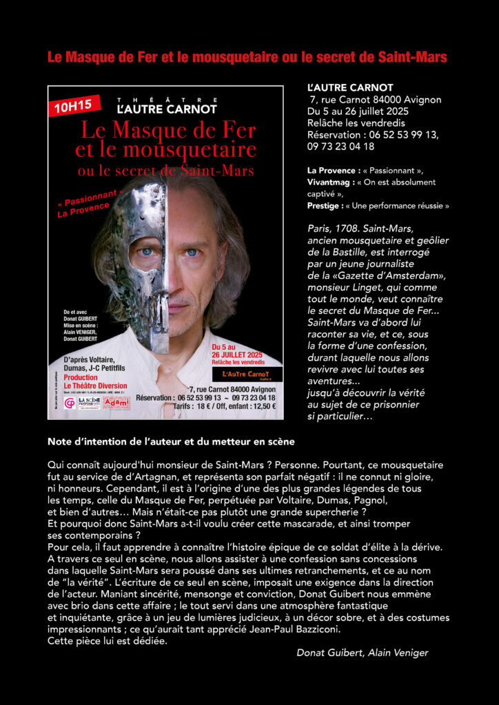 …pour découvrir la vérité sur le Masque de Fer à Avignon au théâtre l’Autre Carnot